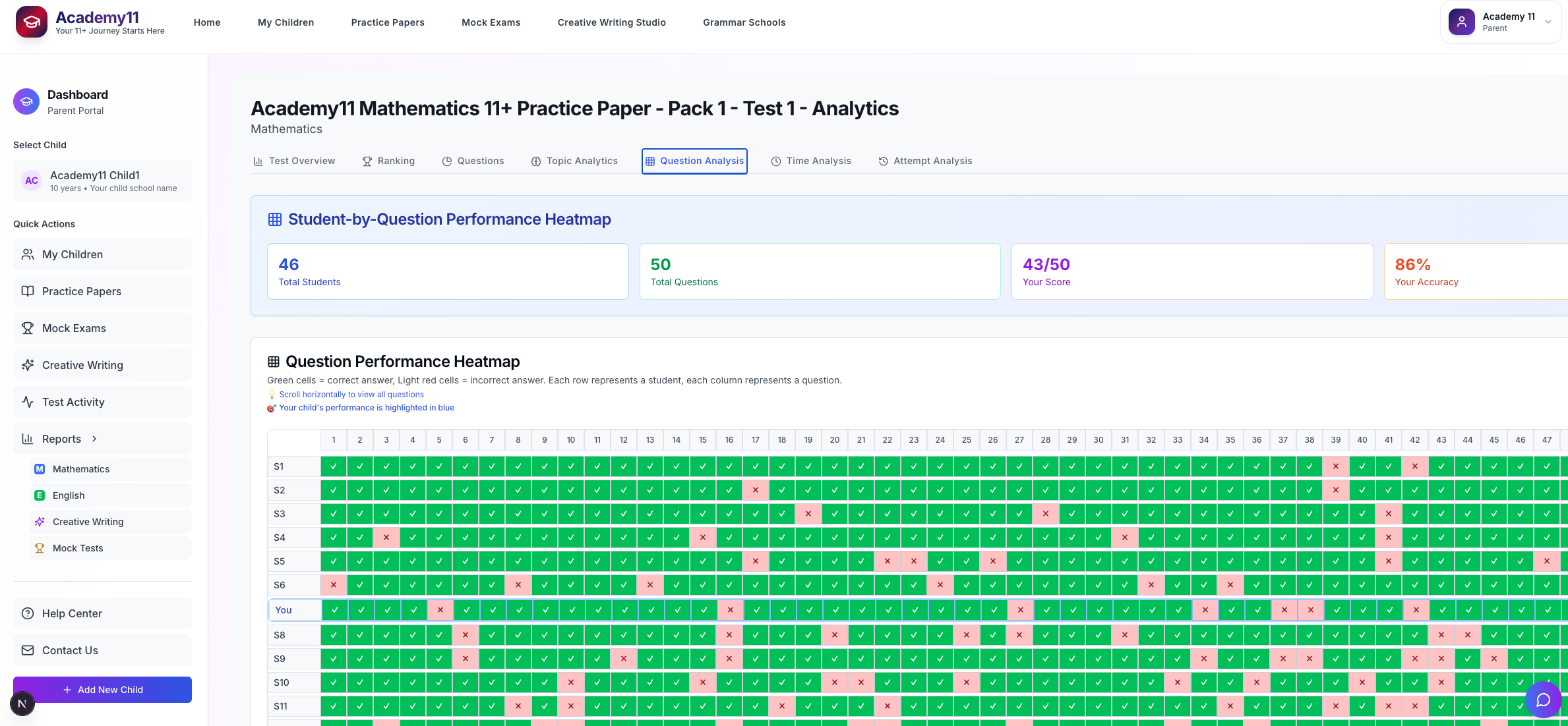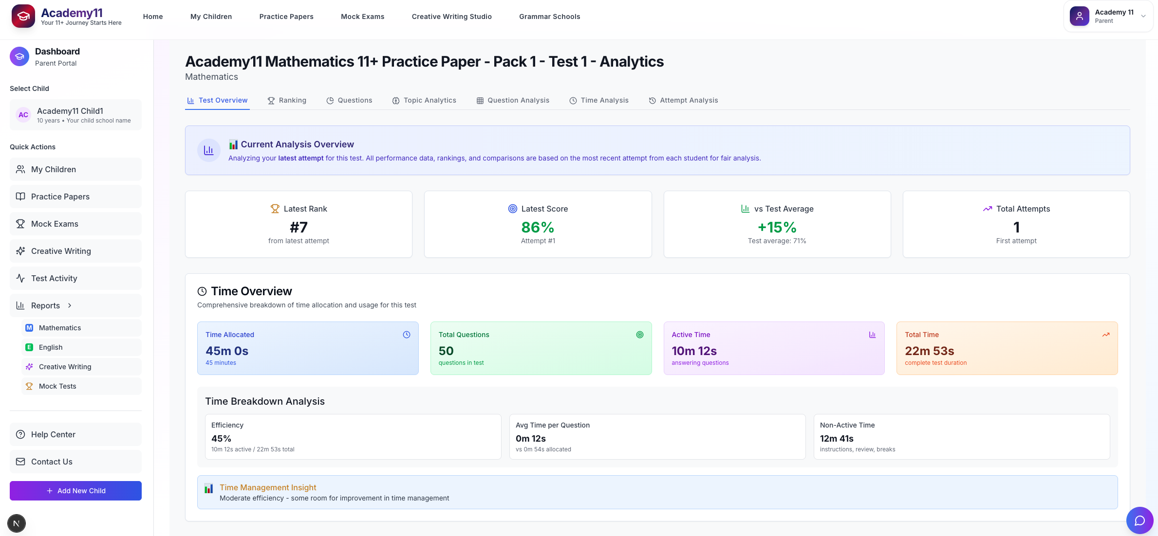 Comprehensive insights that drive real improvement in your child's 11+ preparation journey.