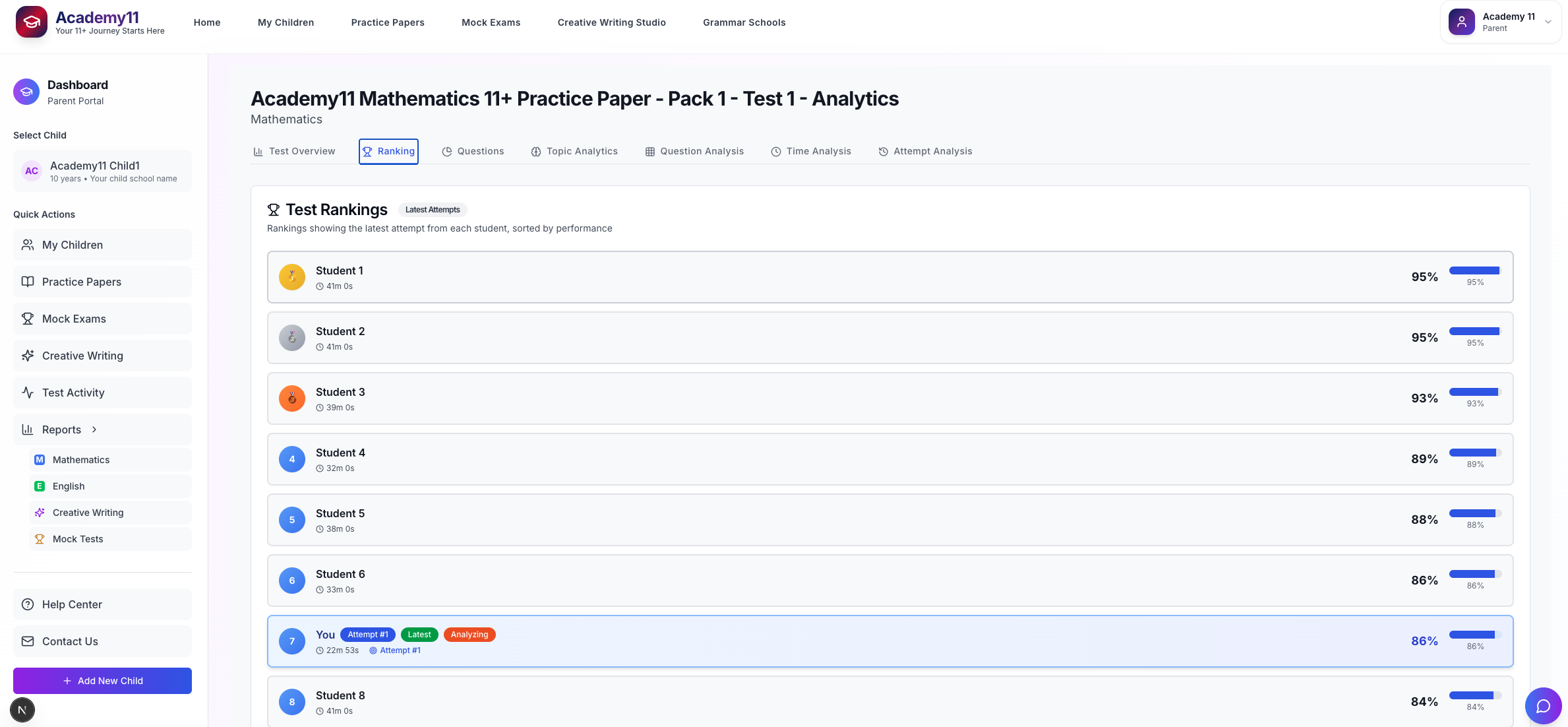 Transform your child's 11+ preparation with comprehensive analytics, detailed performance insights, and data-driven recommendations for optimal success.